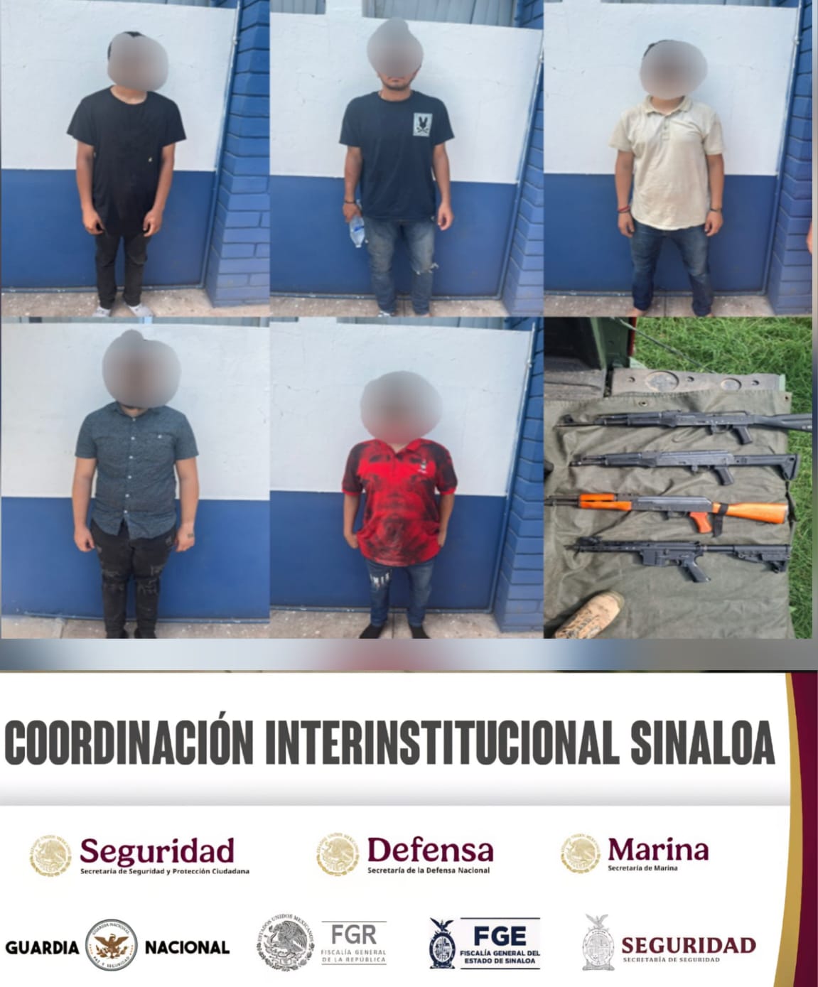 Personal del Ejército Mexicano, en coordinación con la Guardia Nacional, la Secretaría de Marina, la Secretaría de Seguridad y Protección Ciudadana, la Fiscalía General de la República, la Fiscalía General del Estado y la Secretaría de Seguridad Pública Estatal, a través de la Policía Estatal Preventiva, detuvieron a cinco civiles a quienes les aseguraron armamento y municiones.