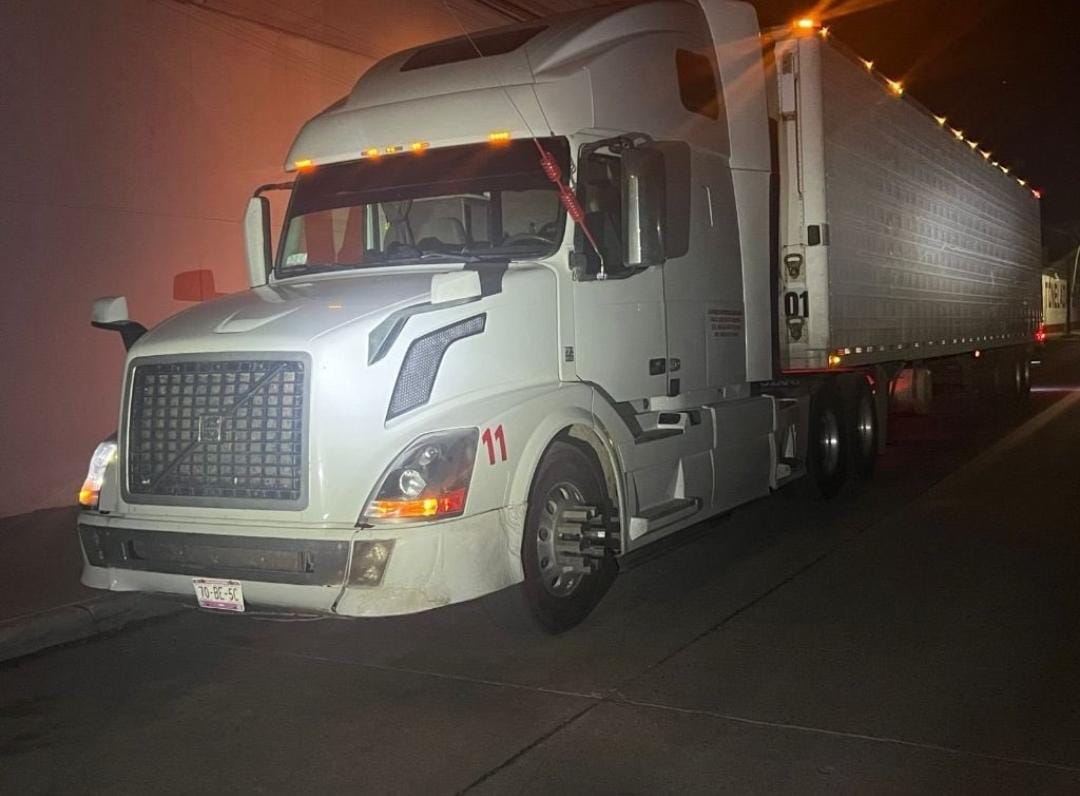 Durante la acción, las autoridades aseguraron aproximadamente 320 kilogramos de metanfetamina, los cuales se encontraban ocultos en un tractocamión marca Volvo con caja refrigerada.