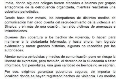 “En Sinaloa estamos atrapados entre el miedo y la incertidumbre por una guerra que el gobierno no puede detener”, afirmó la senadora del PRI, Paloma Sánchez Ramos, al presentar una iniciativa para gar...