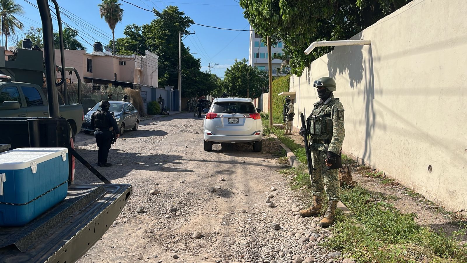 Elementos de diversas corporaciones policiales, así como personal de la Secretaría de la Defensa Nacional (Sedena) y de la Secretaría de Seguridad y Protección Ciudadana, acudieron al sitio y confirmaron la presencia del cuerpo, que yacía boca abajo en la banqueta, con las manos atadas hacia atrás y vestía únicamente un short negro.