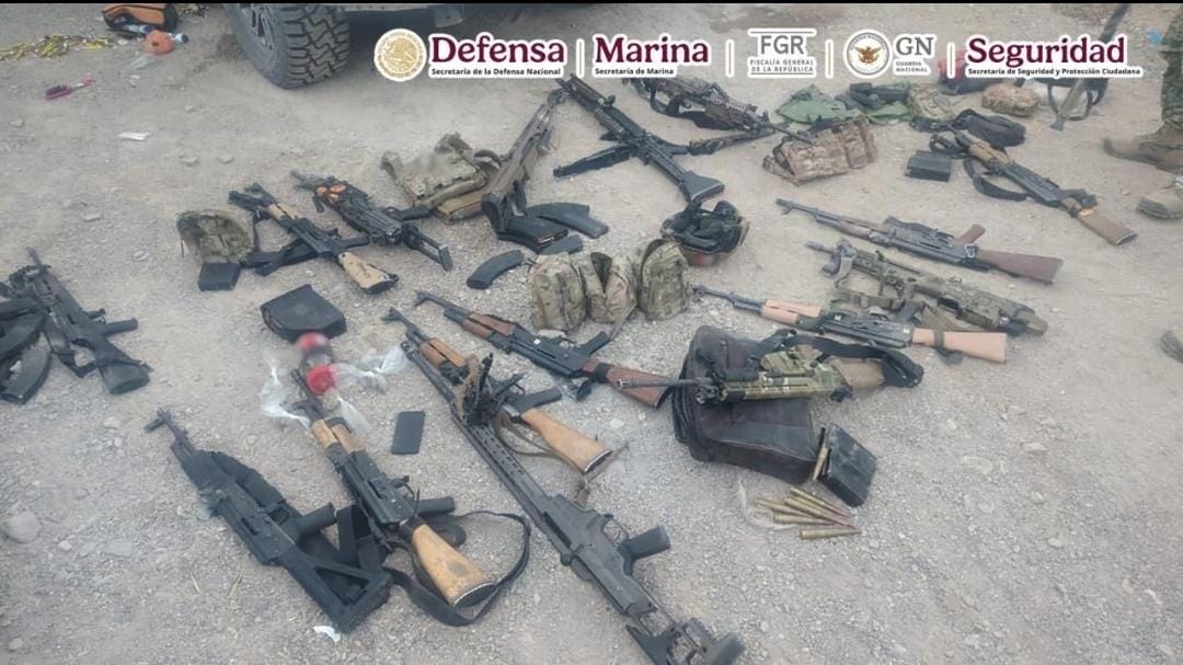 En el operativo se aseguraron 11 armas largas, 2 ametralladoras, 2 fusiles Barret, vehículos, artefactos explosivos y un dron.