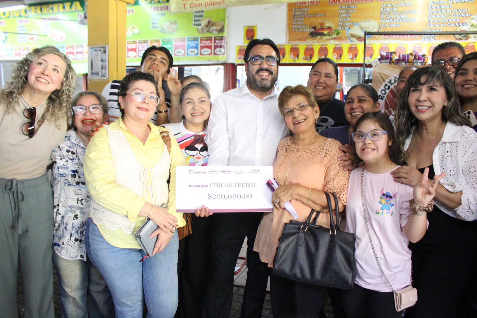 Como parte del programa Mujeres Emprendedoras por el Bienestar que impulsa el Ayuntamiento de Culiacán, el presidente municipal Juan de Dios Gámez Mendívil acudió a las instalaciones de Ciudad Universitaria de la Universidad Autónoma de Sinaloa (UAS) para hacer entrega simbólica de un cheque por 200 mil pesos al grupo de mujeres emprendedoras denominadas Chicas Trébol, entre las cuales se encuentra la señora Teresita de Jesús, locataria de un puesto de comida en la Facultad de Derecho.