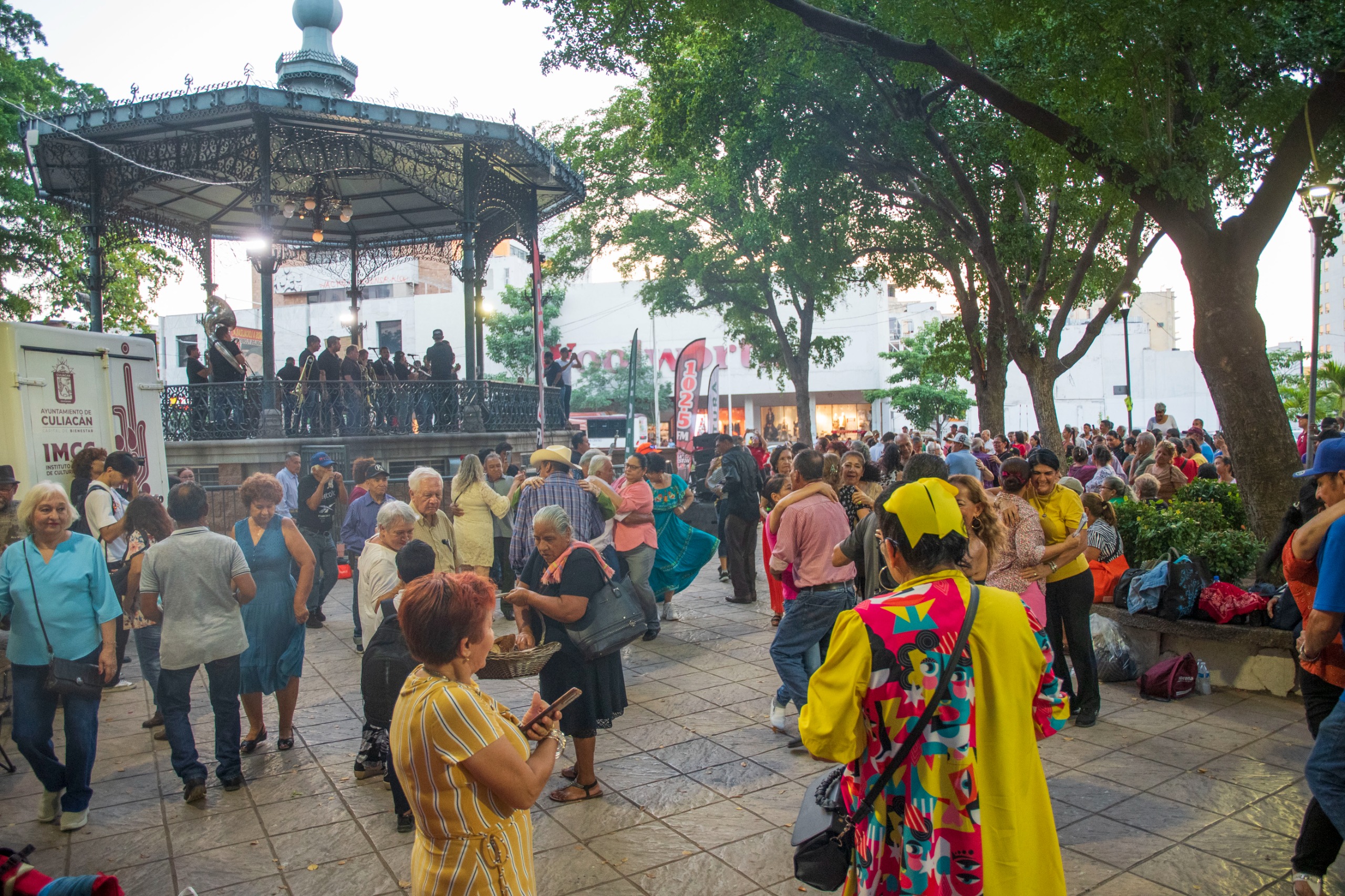 Culiacán, Sin., a 23 de octubre de 2025.– La tradicional “Fiesta en el Kiosco” volvió a encender el ambiente en la Plazuela Álvaro Obregón, donde chicos y grandes disfrutaron de una tarde llena de ritmo, alegría y convivencia al son de la Banda Sinaloense Los Nuevos Coyonquis.