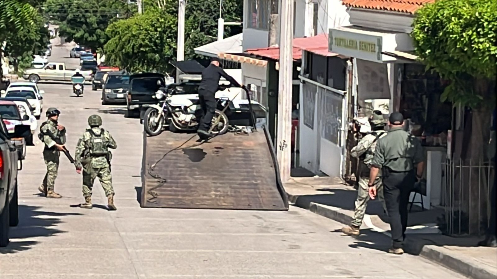 Elementos de la Secretaría de la Defensa Nacional acudieron al sitio y solicitaron la presencia de agentes de la Fiscalía General del Estado para realizar las diligencias correspondientes. Asimismo, fue solicitada una grúa para trasladar la motocicleta a la pensión de bienes asegurados como parte de la investigación.