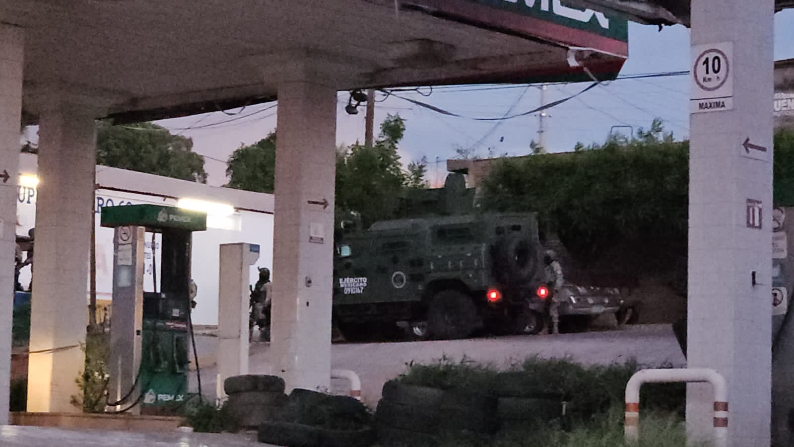 El automóvil quedó detenido junto a una gasolinera en desuso, donde elementos de la Secretaría de la Defensa Nacional (Sedena) acordonaron la escena y aseguraron los indicios del crimen.
