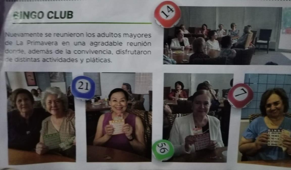 La revista interna del lujoso residencial de Culiacán publica una foto de la ex fiscal jugando Bingo y festejando una ganancia.