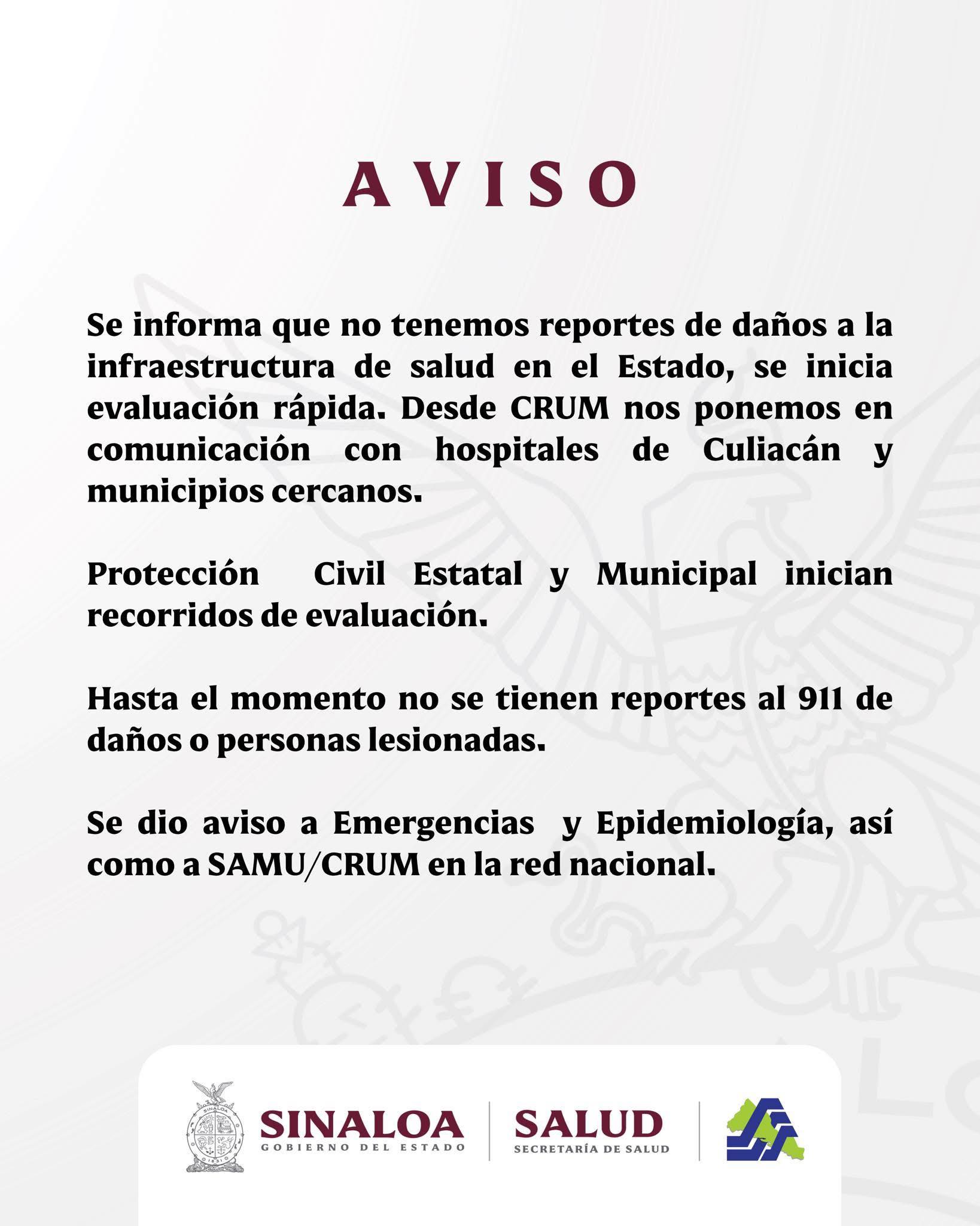 Home / Estatal / Sin reporte de daños la infraestructura de Salud en Sinaloa tras el sismoEstatalSin reporte de daños la infraestructura de Salud en Sinaloa tras el sismo24 julio, 2025Share this ArticlePrevious ArticleCAE LA VENTA DE LIBROS USADOS EN EL PARQUE REVOLUCIÓN: “YA CASI NO LEEN”, LAMENTA “EL GÜERITO”Next ArticleD’CHANFLEGMRVSomos una productora de noticias que nos caracterizamos por informar veraz y oportunamente a nuestros seguidores. Related Posts Esta mañana, el Secretario de Seguridad Pública y Tránsito Munici ... 5 febrero, 2026 FGE informa de los hechos delictivos registrados el lunes 02 de f ... 3 febrero, 2026 FGE informa de los hechos delictivos registrados el miércoles 28 ... 29 enero, 2026 Deje un comentario Cancelar respuestaTu dirección de correo electrónico no será publicada. Los campos obligatorios están marcados con *ComentarioNombre * Correo electrónico * Web Guardar mi nombre, correo electrónico y sitio web en este navegador para la próxima vez que haga un comentario.