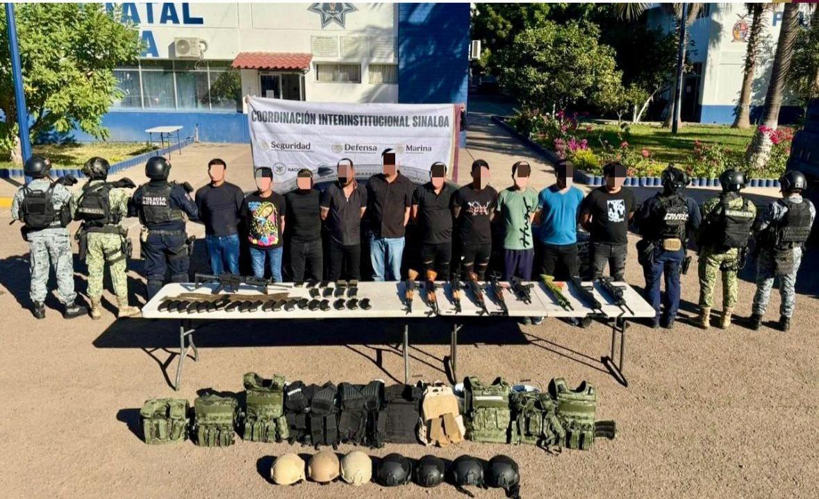 A los 10 hombres detenidos se aseguraron armamento y equipo táctico, además de un vehículo, entre otros objetos que a continuación se detalla;