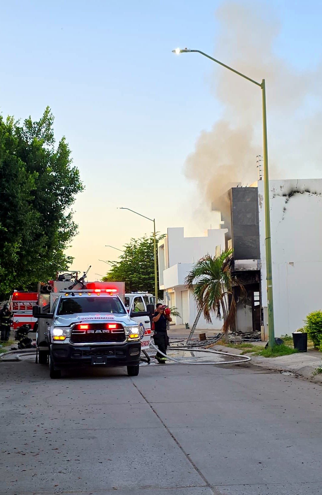 Elementos del Cuerpo de Bomberos Culiacán y de la Policía Estatal Preventiva acudieron al domicilio ubicado sobre la calle de los Poetas, entre la avenida de los Artistas, donde el fuego consumió la segunda planta del inmueble.